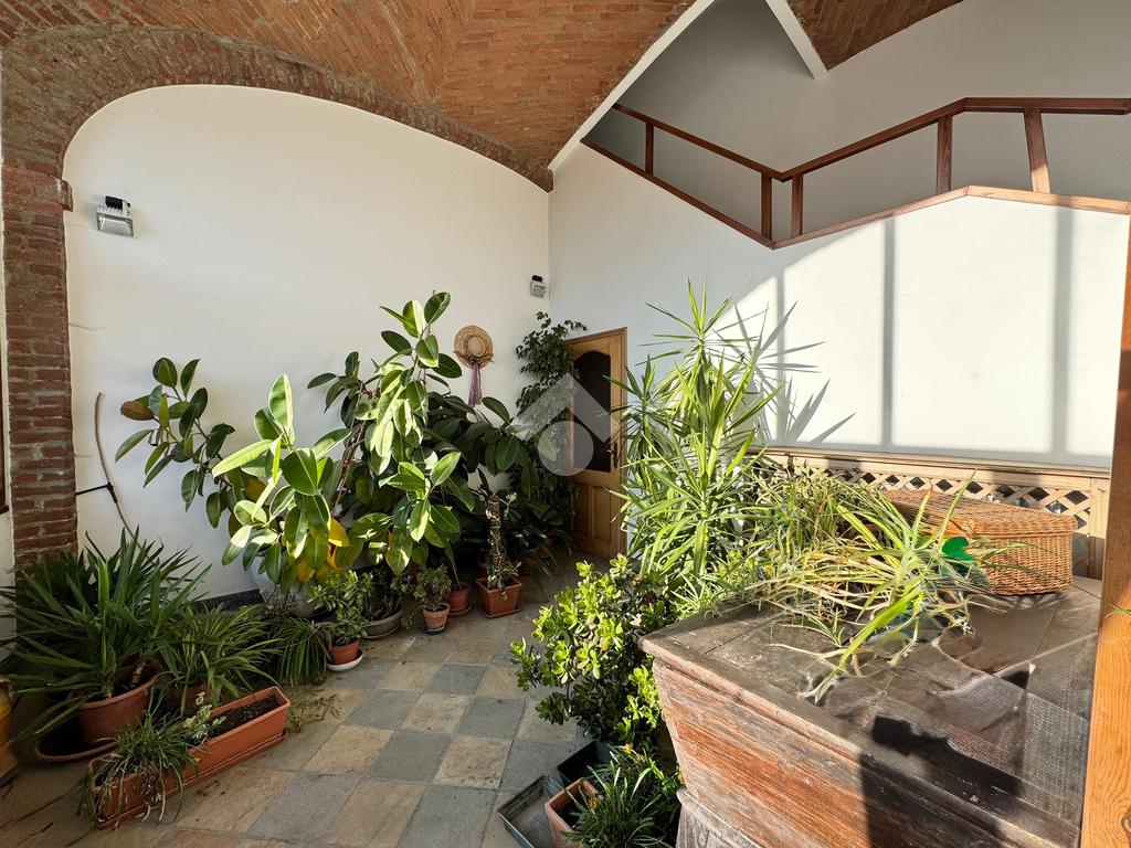 L’ingresso avviene tramite un meraviglioso terrazzo coperto, arricchito da piante verdi di vario genere, ideale per momenti di relax. Salendo le scale si accede a un ampio soggiorno doppio, luminoso e soleggiato, dotato di camino funzionante, che conferisce all’ambiente un’atmosfera calda e accogliente.