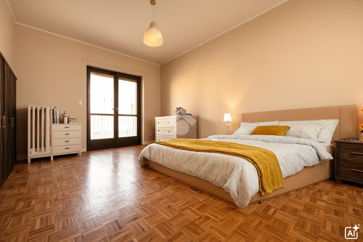 La zona notte è composta da tre camere da letto, tutte rifinite con uno splendido parquet in ottime condizioni, e da due bagni, uno dotato di vasca e l’altro di doccia.