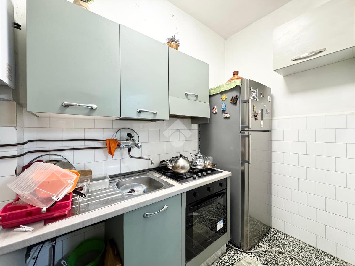 L’appartamento si apre su un ingresso accogliente, che conduce a un ampio soggiorno con accesso diretto al balcone, ideale per momenti di relax all’aria aperta. Il cucinino, pratico e ben organizzato, risulta perfetto per ottimizzare gli spazi senza rinunciare alla funzionalità.