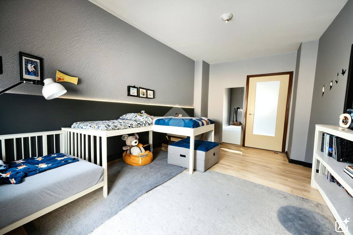 L’immobile si apre su una luminosa zona giorno con accesso diretto al balcone, ideale per momenti di relax. La cucina è abitabile e dispone di un secondo balcone con affaccio sul retro del condominio, garantendo tranquillità e riservatezza. La zona notte è composta da tre spaziose camere da letto di generose dimensioni e da doppi servizi, entrambi finestrati e completi di box doccia.